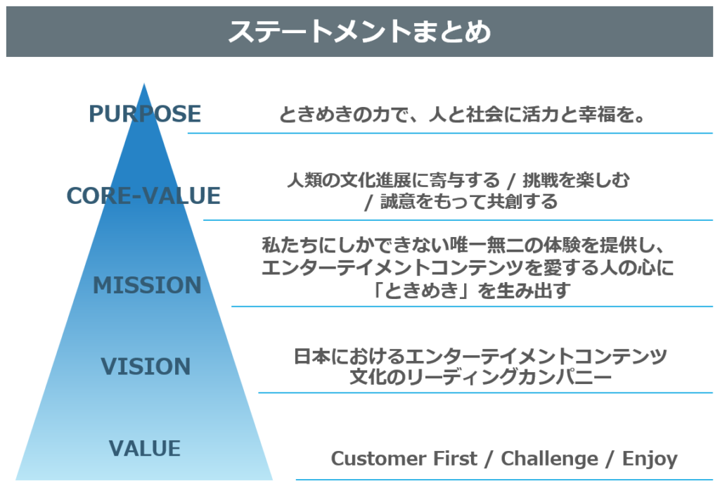 以前のビジョンは、『日本におけるエンターテイメントコンテンツ文化のリーディングカンパニー』でした。
